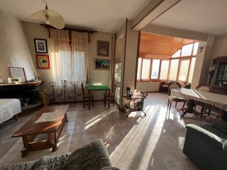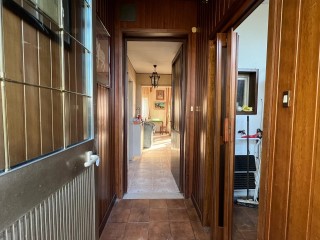 Entrando nell’abitazione si viene accolti da un piccolo disimpegno che introduce alla zona giorno, dove si trovano un bagno e la cucina ampliati nel tempo. L’ambiente più caratterizzante è il grande salone doppio, arricchito da un caminetto a legna e da ampie vetrate che permettono di godere della vista sul giardino e di accedervi direttamente. Una scala in marmo con balaustra in legno, conduce al piano superiore, dedicato alla zona notte, con due ampie camere matrimoniali entrambe con accesso al balcone che affaccia verso il giardino di proprietà. Sullo stesso livello si trova il bagno a servizio del piano. Dal disimpegno, tramite una scala retrattile, si accede infine alla soffitta, utile come spazio di deposito e per ispezionare il tetto. Le condizioni generali dell’immobile sono in larga parte originali, sia per quanto riguarda le finiture che gli impianti e i serramenti. Proprio per questo si presenta come una soluzione ideale per chi desidera personalizzare gli spazi attraverso una ristrutturazione completa. Il riscaldamento è autonomo con caldaia a metano.
