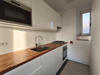 L’appartamento è composto da una cucina luminosa, bagno dal design contemporaneo, ripostiglio e due ambienti flessibili, ideali come zona giorno e camera da letto.